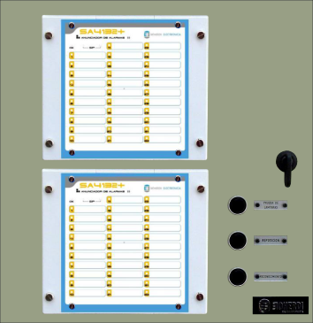 • Módulo anunciador de alarmas SA4132+: Permite anunciar en forma visual y acústica el cambio de estado de cualquier señal capturada por el módulo de entradas.